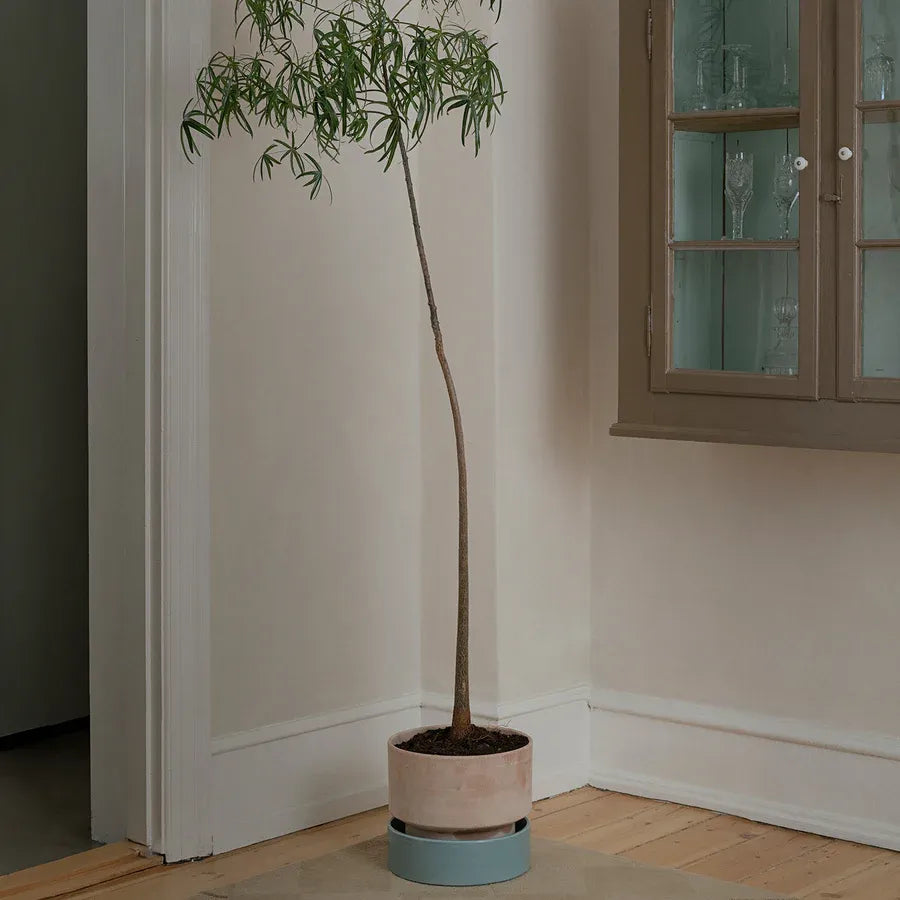 You've found the perfect plant pot, and you’re now looking for a saucer to match (and catch excess water). Enter the Hoff Saucer by Bergs Potter. Designed by Danish graphical designer Anne Hoff, this sleek piece is hand-crafted at a small family-owned workshop in Tuscany using the finest Italian clay, then hand-dipped with glaze for a glossy finish. The perfect companion to the Hoff Planter in raw terracotta — with four luscious colors to choose from — this saucer can be used both indoors and outdoors.